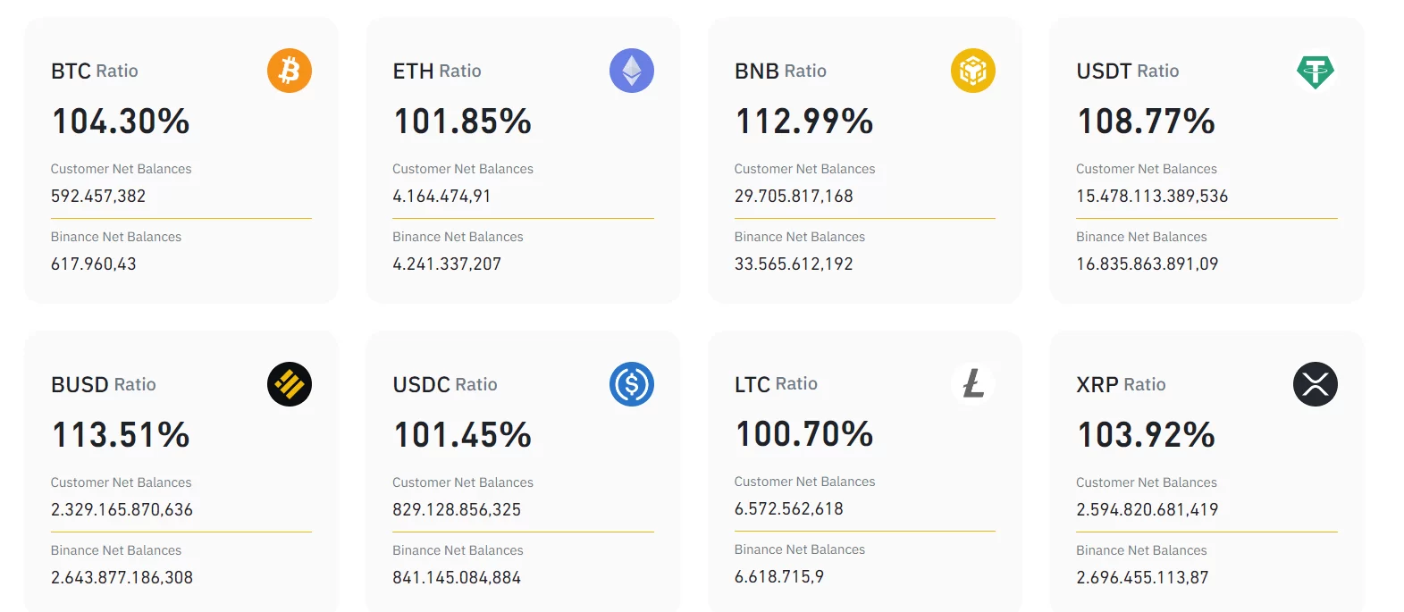 You see the details of customer and Binance balances in the graphic above, specifically for cryptocurrencies.