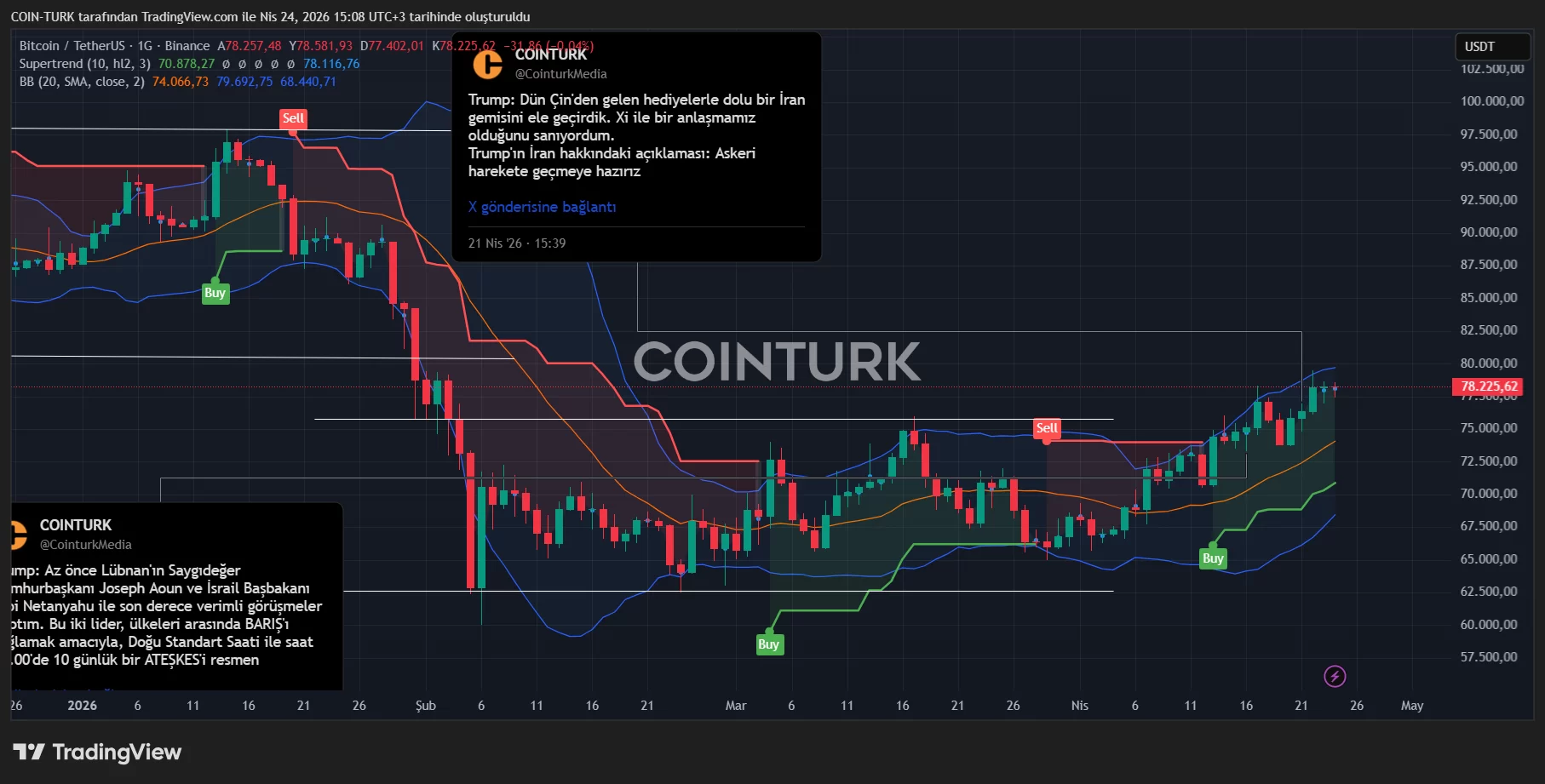After convincingly closing above $75,727, BTC has broken free from its parallel trading channel and is now eyeing its previous range high of $80,285 as the next target. If talks proceed on Sunday, this rally could accelerate. The $77,500 mark stands out as a critical threshold for sustaining the upward momentum.
