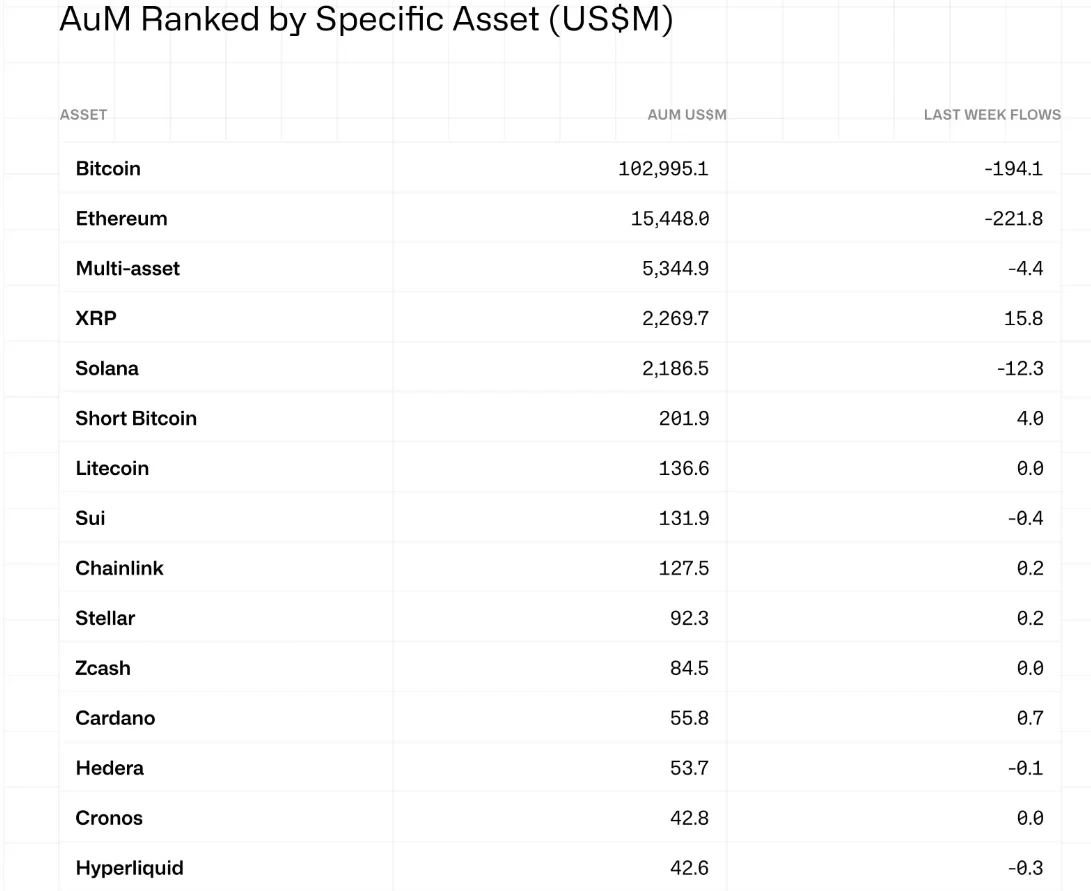 Funds focused on broad crypto baskets also experienced outflows, with $4.4 million withdrawn last week. Solana registered the second-highest outflows among altcoins, after Ethereum, as investors pulled out $12.3 million. This reduction lowered Solana’s total asset value in funds to $2.186 billion. Despite widespread volatility, a notable resurgence in buying was observed for XRP, which saw net inflows of $15.8 million, even as most altcoins recorded declines. Meanwhile, investor interest in short Bitcoin products remains steady, reflecting continued hedging activity and uncertainty about future price directions.