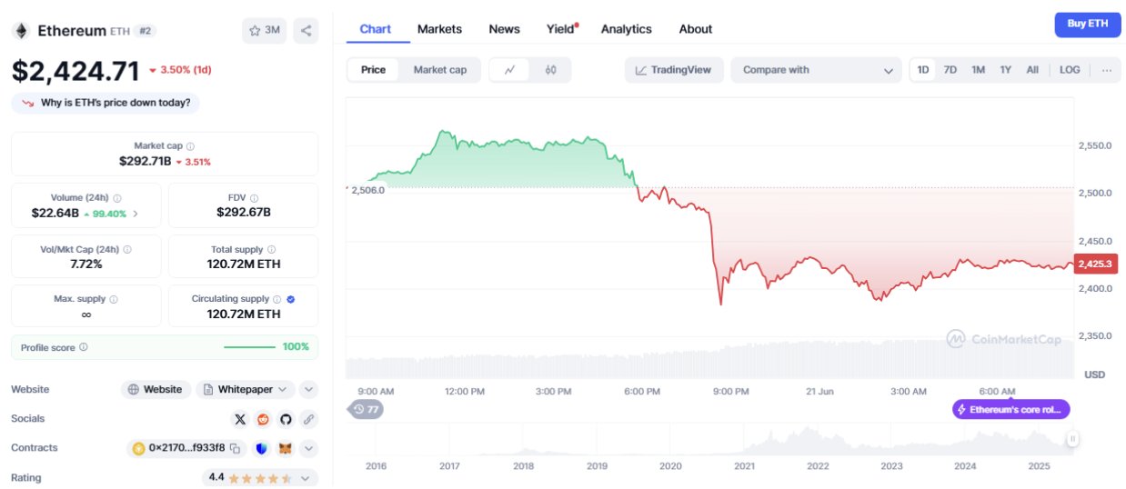 Ethereum $3,094, with the current price of 2,428.30, has been struggling as it has dropped by 3.64 percent in the last 24 hours, 4.96 percent in the last seven days, 7.89 percent in the last month, and 30.71 percent in the last 12 months. This unfortunate price performance has seen big investors, commonly known as whales, look elsewhere in such dips. Kaanch Network, which has better technology and presale traction, is attracting much attention as a more promising investment, and the best traders are predicting a possible 28,600% increase because of its innovative asset ownership model in a multi-trillion-dollar market.