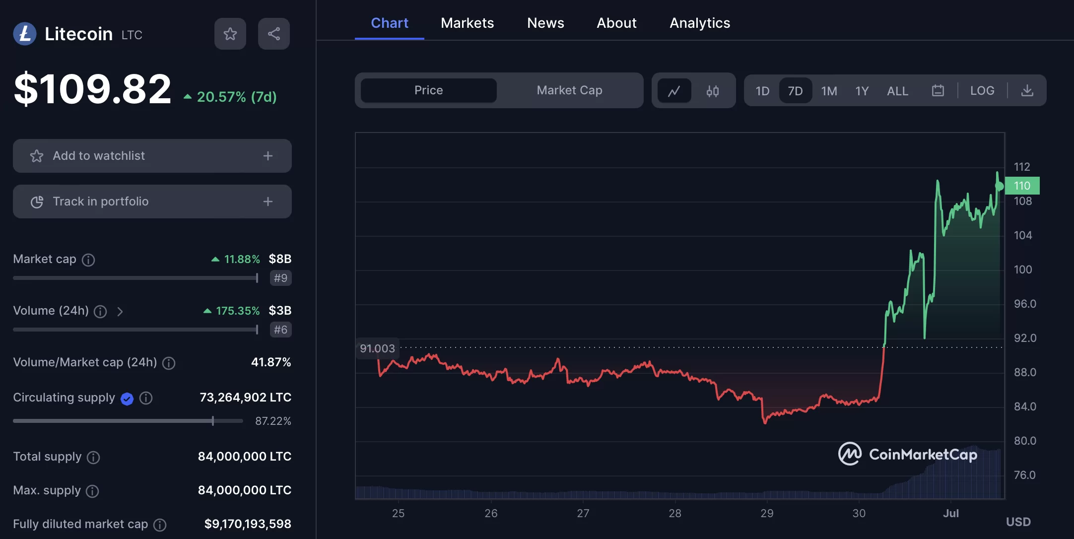 The renewed surge in the crypto market has once again made Litecoin (LTC), one of the popular altcoins, stand out with its significant value increase recorded since the end of June. The recent upticks have enabled LTC to surpass the $110 mark.