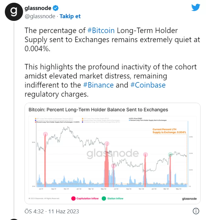 For now, Glassnode data confirms that long-term Bitcoin holders are unaffected by the uncertain regulatory environment surrounding Binance and Coinbase, and the possibility of a change in the long term continues to be debated.