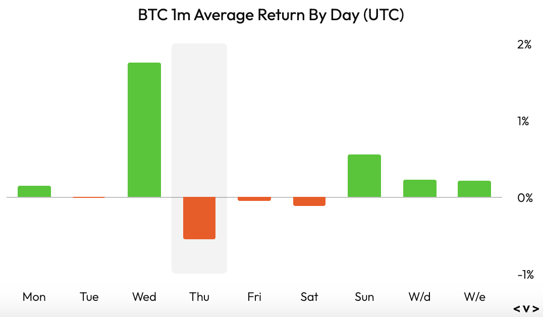 On October 1, Wednesday, Bitcoin’s price increased by 4%, briefly surpassing $119,000. The significant net inflow in the spot ETF sector bolstered risk appetite and led to Bitcoin approaching resistance levels shortly. Data provider Velo indicated that, over the past year, the strongest average performance occurred on Wednesdays, while Thursdays saw the weakest, suggesting that trading days could remain flat or negative.