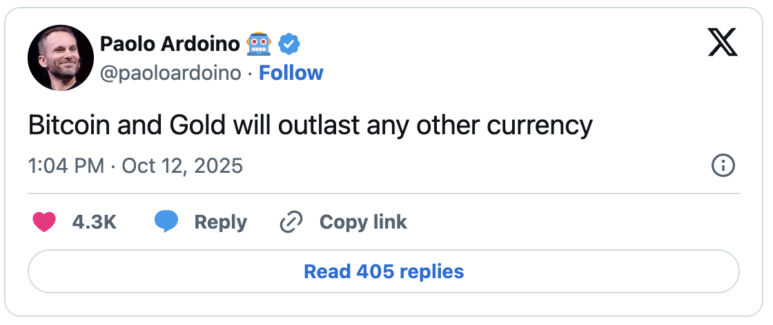 Michael Saylor praised Bitcoin’s resilience in a statement, underscoring his long-term confidence despite the general market downturn. Concurrently, Tether CEO Paolo Ardoino announced his company’s ongoing investments in Bitcoin and gold, stating that both assets represent lasting value. Ardoino emphasized that institutional trust in the digital asset market remains robust.