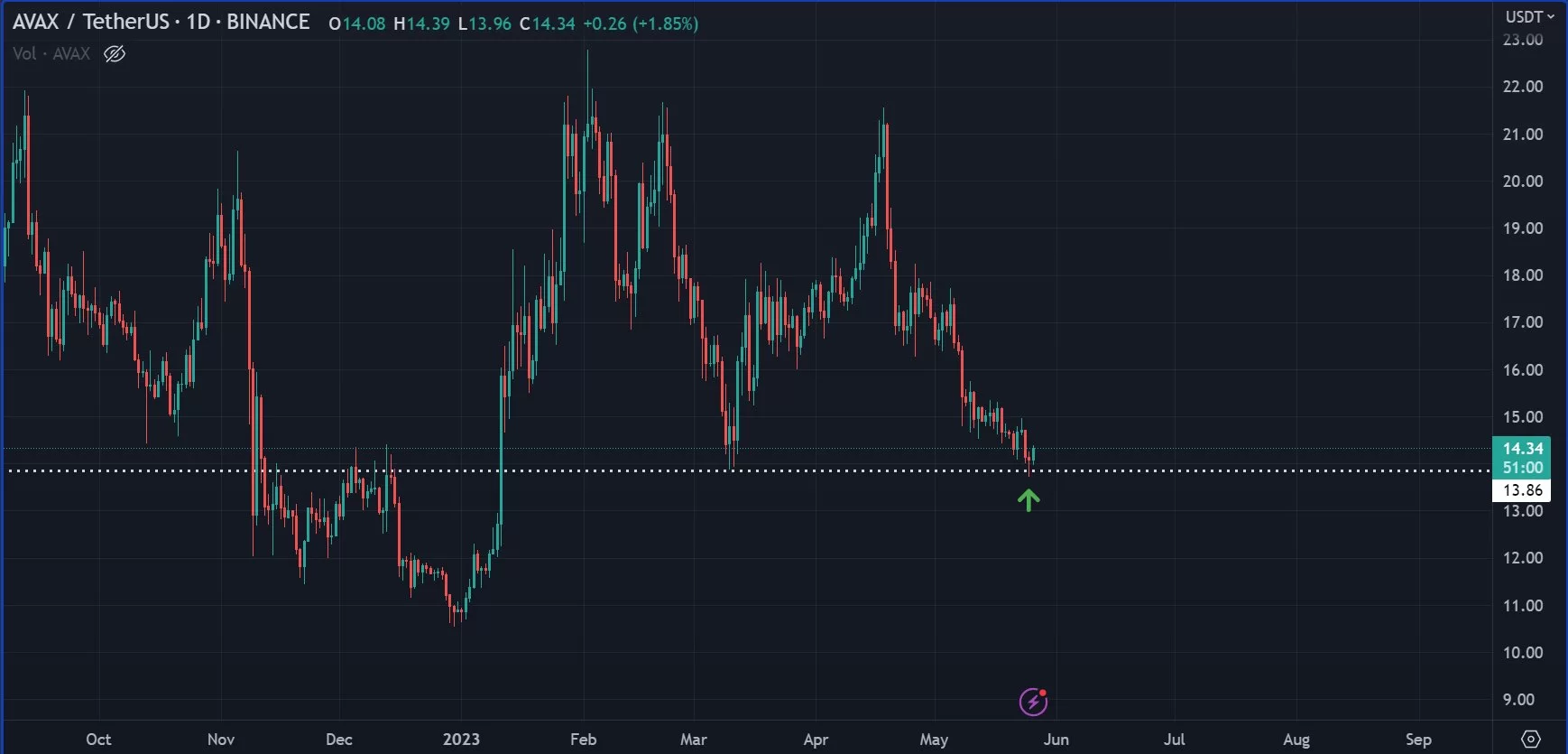 “There’s a nice setup on AVAX: it’s making a nice engulfing daily right after we swept a major low. Not sure how high it’s going to bounce, but I think it’s definitely worth playing for now.”