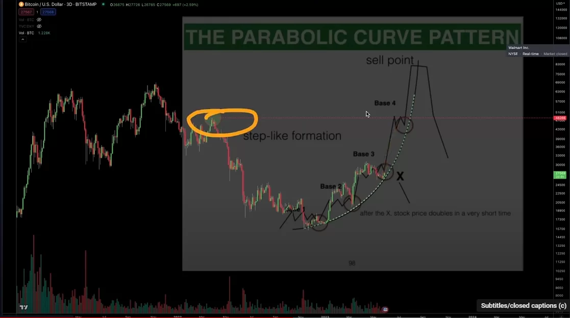 We are currently completing our third base. Our first base is complete, our second base is complete, and now we’re on our third base. And the third base is just about to complete right on the edge of the parabolic curve. For Bitcoin to maintain the parabolic curve model, it needs to bounce from here. What this model suggests is that the next move will take us above $48,000.