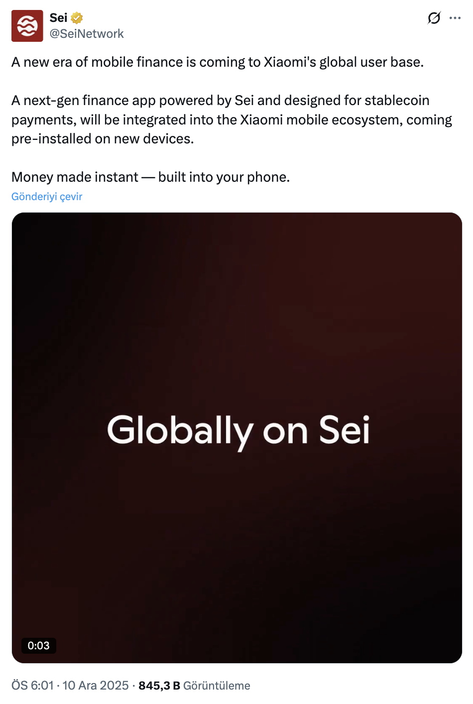 With 680 million global users, Xiaomi will distribute the Sei Mobile App as pre-installed software on all new phones outside China and the USA. This spans significant coverage from Europe and Southeast Asia to Latin America and Africa. Initial launch regions include Hong Kong and the EU, where users might start buying Xiaomi products and even its electric vehicles with stablecoins by Q2 2026.