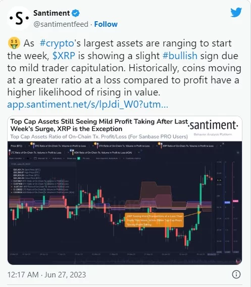 XRP, showing slight bullish signs due to mild trader activity, has historically been more likely to gain value when compared to coins that move in a larger ratio of loss to profit.