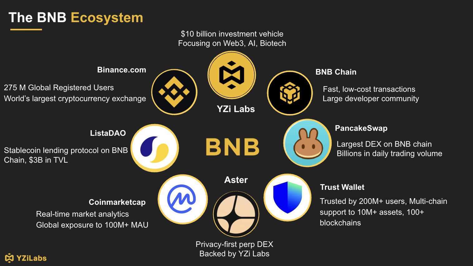 YZi Labs emphasizes a framework prioritizing ownership in web3, human capacity in artificial intelligence, and quality of life in biotechnology under the theme of “new scale laws for humanity.” Pursuant to its strategic goals, YZi Labs integrates incubation, direct investment, and partnership models to establish a unified support line from ideation to scaling. The ecosystem amplifies its reach by leveraging a user base of 460 million, strengthening distribution and feedback loops.